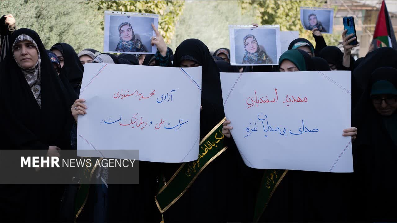 به گزارش خبرگزاری مهر، جمعی از بانوان و طلاب حوزه علمیه خواهران استان البرز عصر یکشنبه با حضور در کانون شهید سبحانی کرج، تجمعی در حمایت از مهدیه اسفندیاری، زن ایرانی ۳۹ ساله اهل فردیس برگزار کردند و در حضور آیت‌الله سید محمدمهدی حسینی همدانی، نماینده ولی‌فقیه در استان و امام‌جمعه کرج و حجت‌الاسلام‌والمسلمین مهدی ولایی برحق، مدیرکل سازمان تبلیغات اسلامی البرز، اقدام دولت فرانسه در بازداشت این شهروند ایرانی را محکوم کردند.