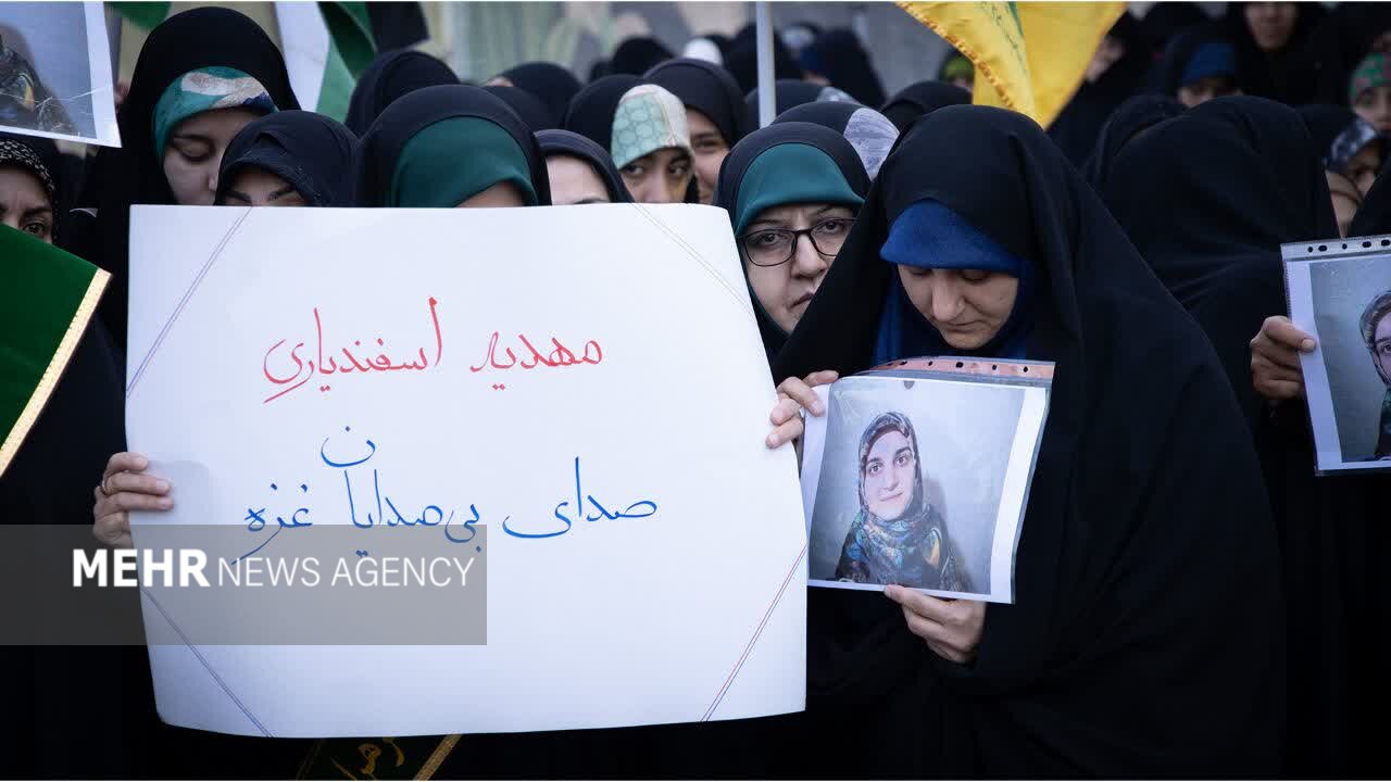 در ادامه این تجمع، بیانیه‌ای از سوی طلاب حوزه علمیه خواهران استان البرز قرائت شد که در متن آن آمده است: ما طلاب، مدیران و اساتید حوزه علمیه خواهران استان البرز، بازداشت غیرقانونی و رفتار تحقیرآمیز با بانوی محجبه ایرانی، خانم مهدیه اسفندیاری را مصداق روشن نقض آزادی‌های دینی، حقوق بشر و کرامت زن مسلمان می‌دانیم و این اقدام دولت فرانسه را به شدت محکوم می‌کنیم. امروز جهان به روشنی می‌بیند که غربِ مدعی آزادی، در برابر باور دینی و ارزش‌های الهی تاب ایستادگی ندارد و از پوشش اسلامی زن مسلمان احساس تهدید می‌کند.